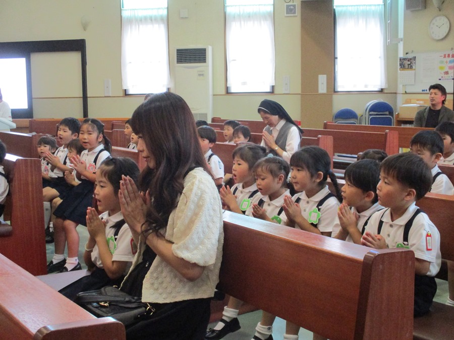 園長先生に聖水をかけていただきました。