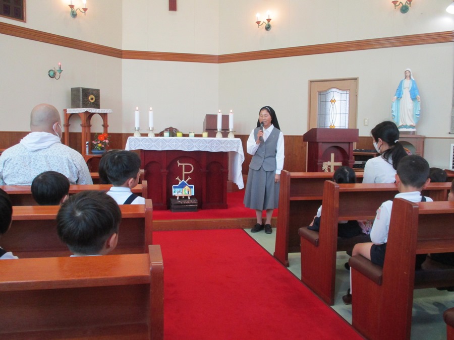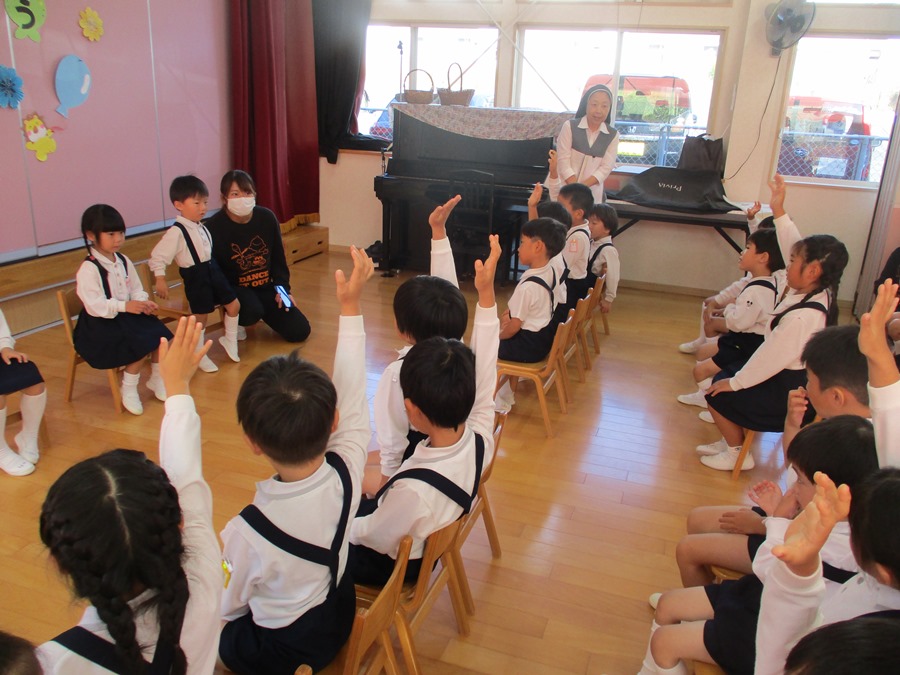 きれいに手を合わせてお祈り・聖歌を歌い、