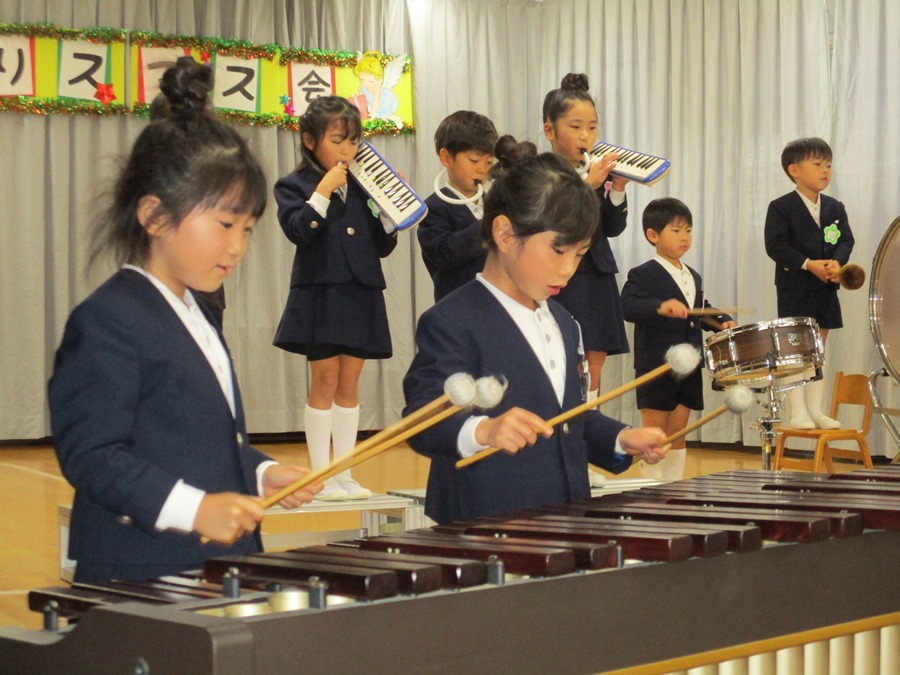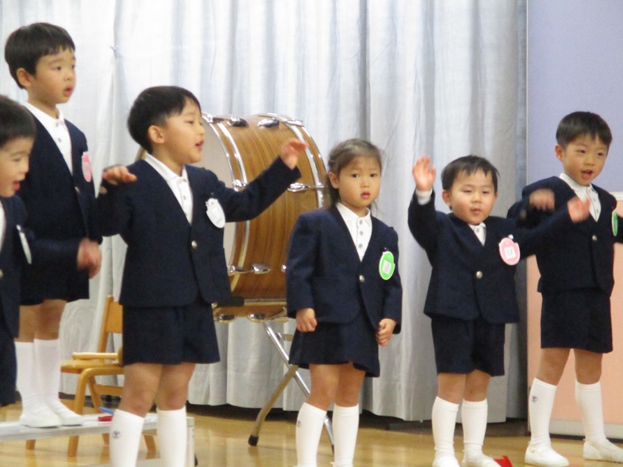 「赤鼻のトナカイ」「幸せなら手をたたこう」等の曲を卒園児さんとも楽しく歌いました!