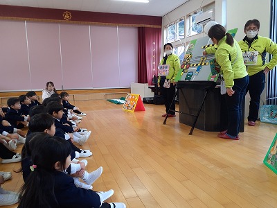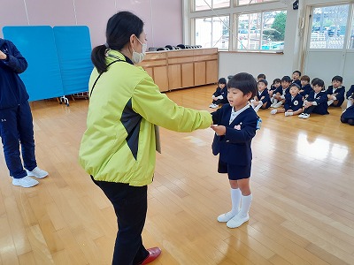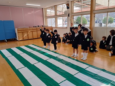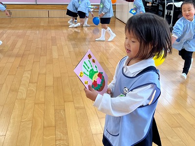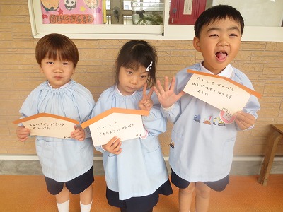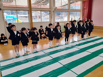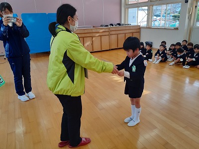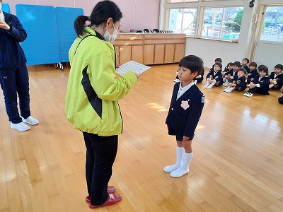 年長ゆりグループの代表のお友だちに、3年間の修了証書が渡されました。