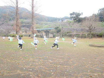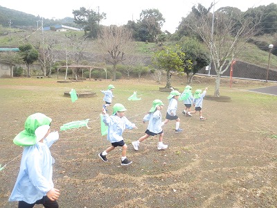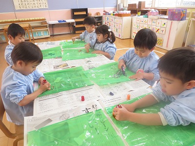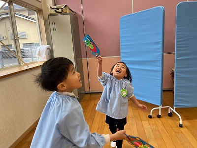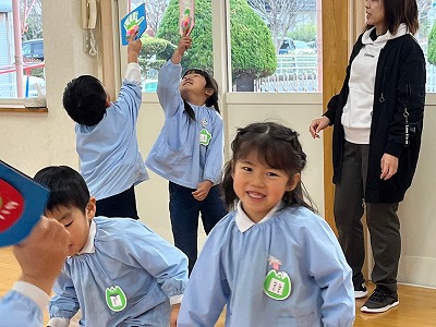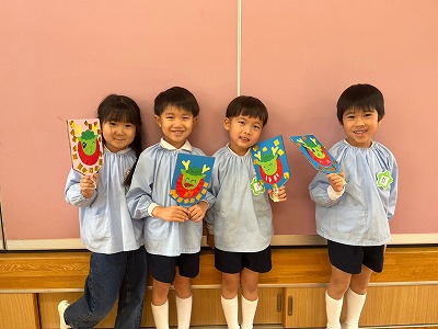 凧作り・凧揚げ・絵馬作りなど、お正月にちなんだ製作や戸外遊びをしました。