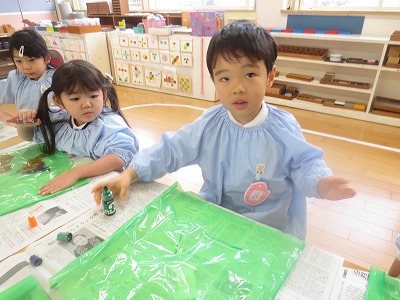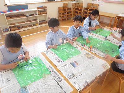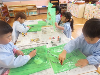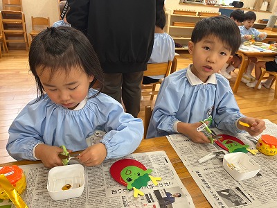 今日は縦割りクラスで製作や戸外遊びを楽しみました。