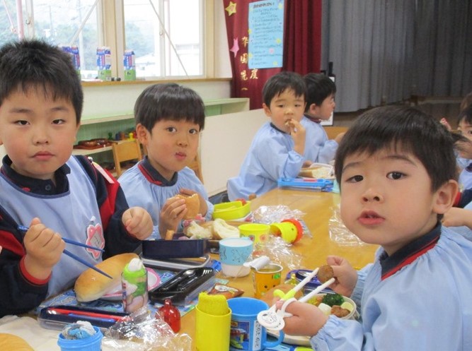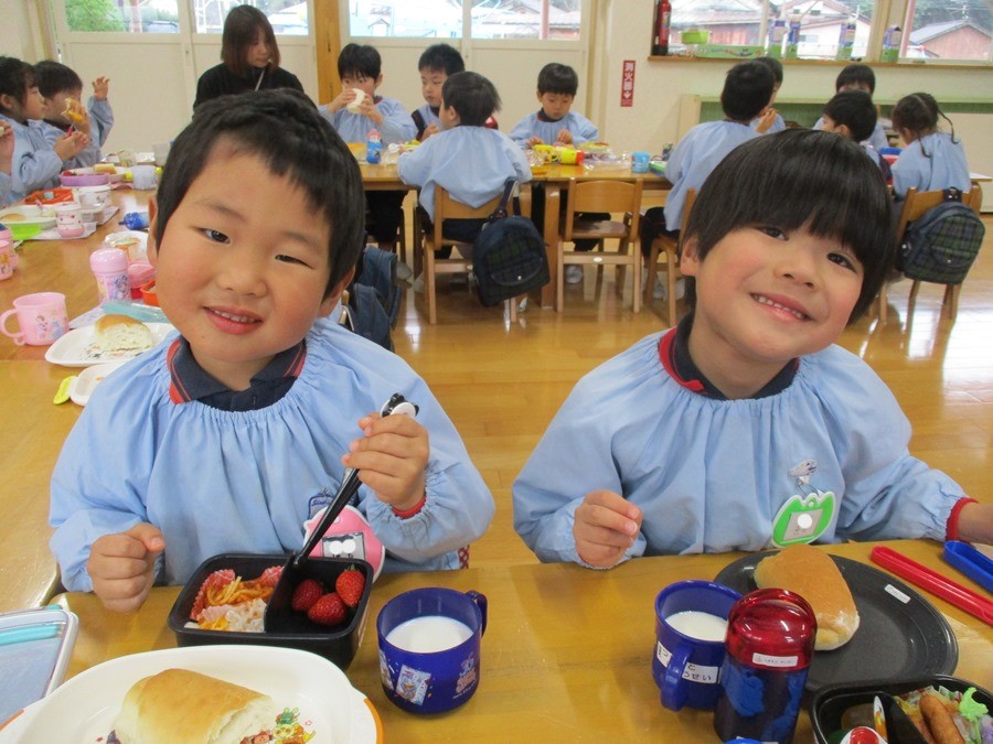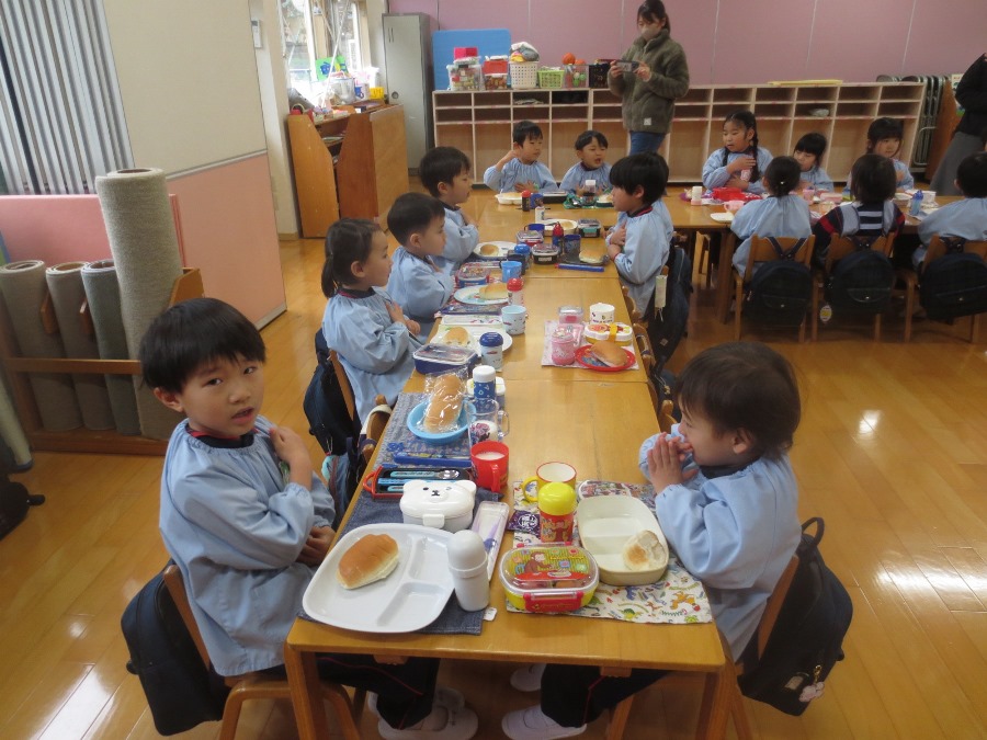 お別れ会の後はみんなで一緒にパン給食を食べました!