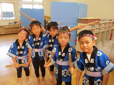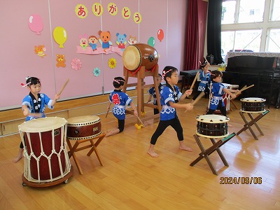 この日は年長ゆりグループさんが和太鼓演奏で出演しました。