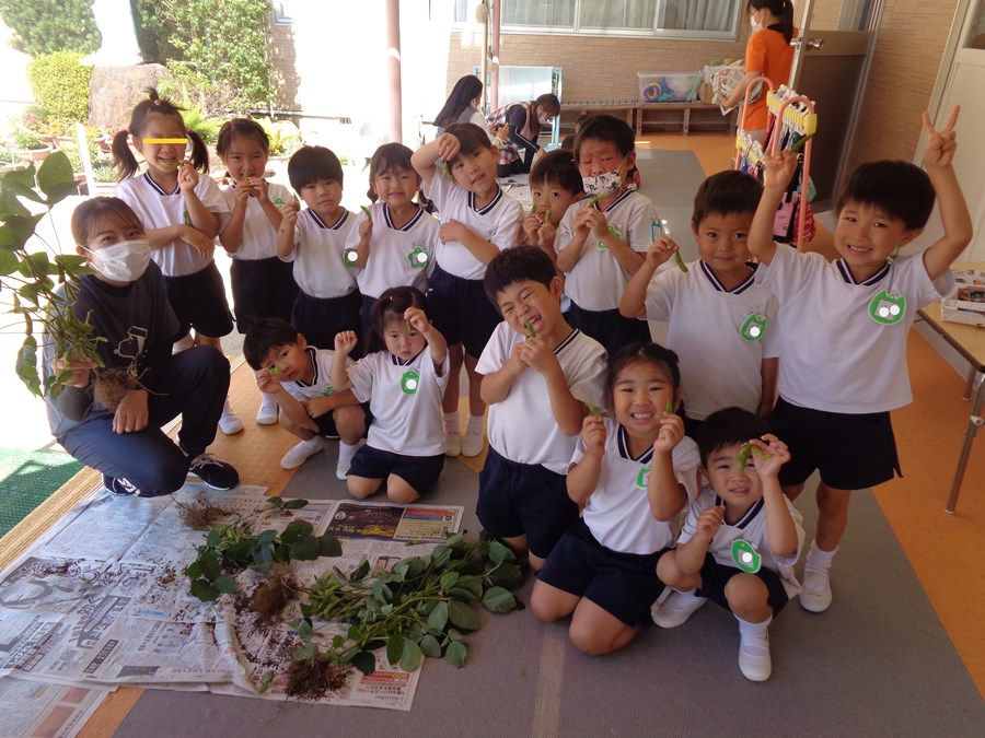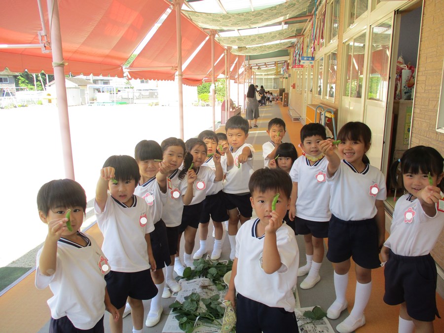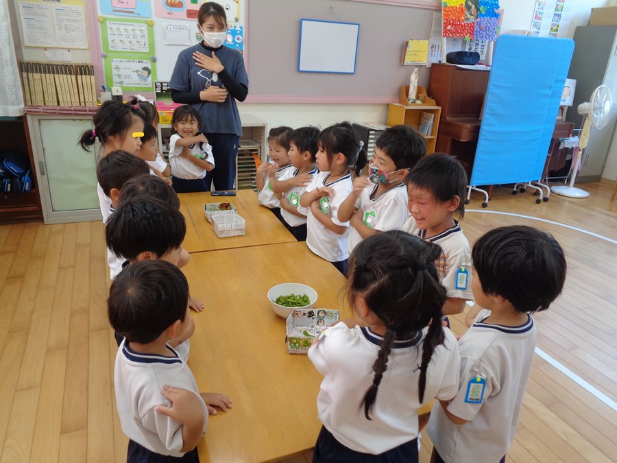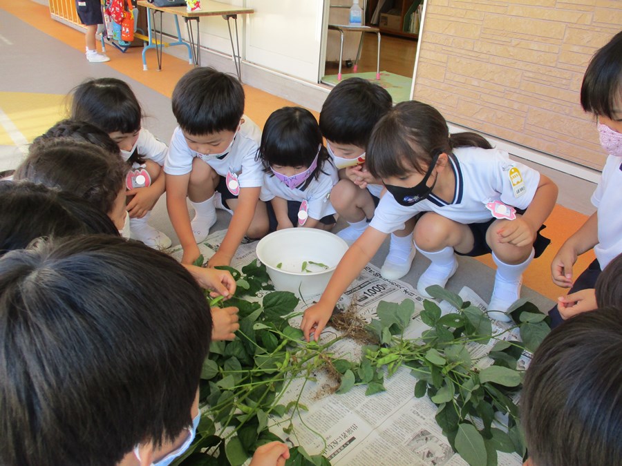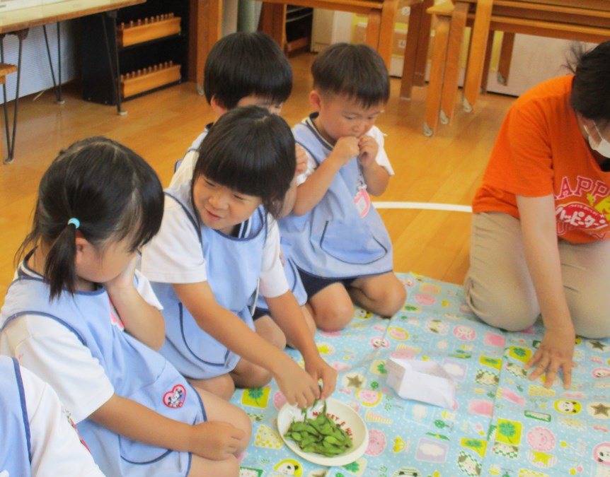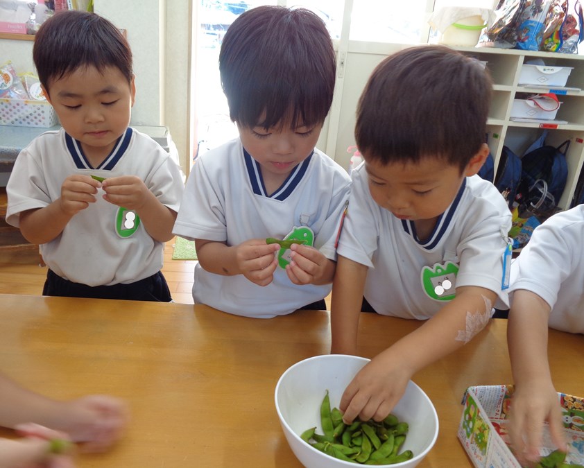 大事に大事に枝豆を取って、鶴崎先生に塩ゆでしてもらいました♡