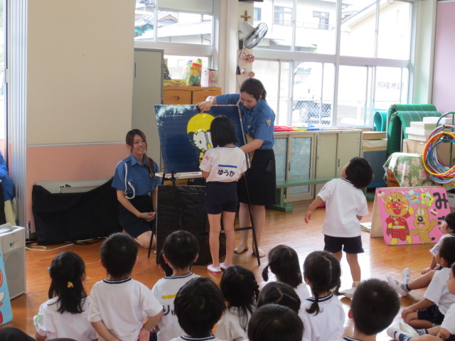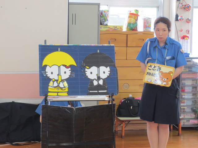 交通安全について、優しいお姉さんのお話をきき
