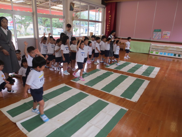 手をたか~くあげて渡ります。」