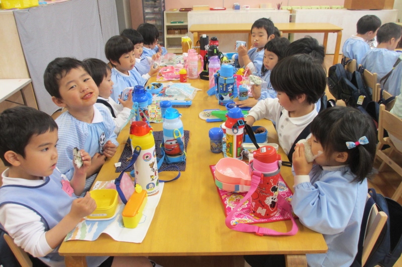 金曜日のお弁当に日におかずを我慢しておにぎりだけにしました
