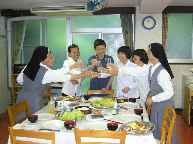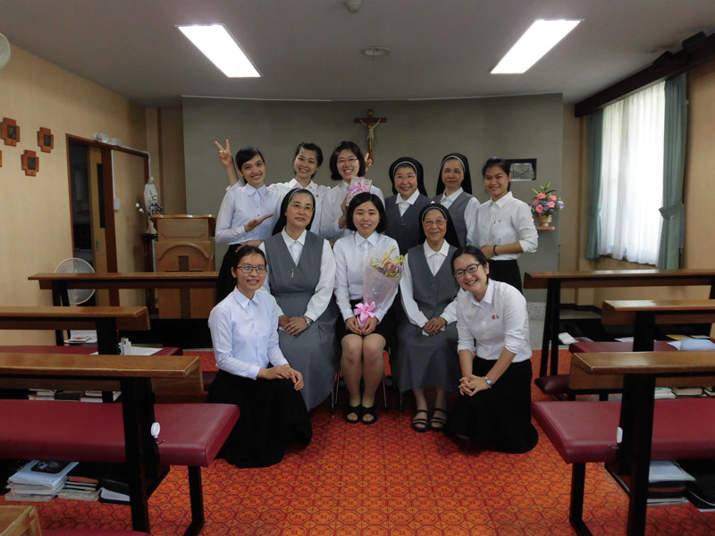 イエスのカリタス修道女会の創立者 アントニオカヴォリ神父様のお誕生日である今日 京都教区 河原町教会の 平野有紀さんが アスピラントとして受け入れられました。近隣のシスター方の祈りと笑顔にかこなれて 落ち着いた雰囲気で ゆったりと式がすすめられ 猛暑の中の泉のようでした。