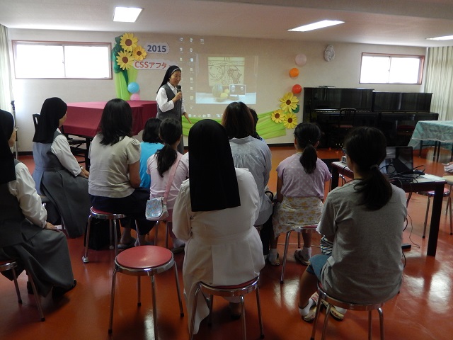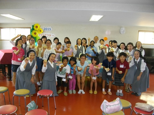 東京修学志願院は、を9月12日(土)10:00am~15:00pm頃まで、CSSアフターを行い、保護者も合わせ、18名の参加者と共に有意義なひと時を過ごしました。午前中は、CSS2015のビデオ鑑賞、カテケージスは急遽変更し、Sr.Mボスコによるスーダンのお話、その後パン作りをし、午後は昼食後、レクリエーション、祈り、記念撮影で終えました。保護者の方も皆喜ばれ、また子どもたちも、12月に行われるアフターの参加も楽しみにしている様子でした。今回、私たちは教会のために奉仕する“パン種”であるものとして、パン種に沿った一貫性のあるプログラムが組まれました。最後は、それぞれ班毎に作った焼き立てパンを手にし、“世界を平和にするのは~パン種!”という掛け声のもと、記念撮影を行いました。