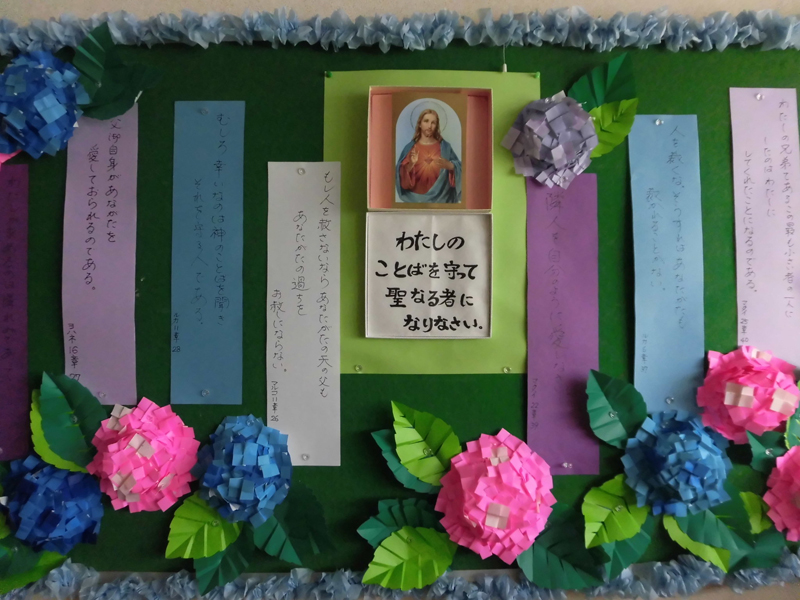 ゲームの後は、「マリア様」についてのお話とみ言葉カードを使っての作業、みんなの真剣さと集中力に感心しました。