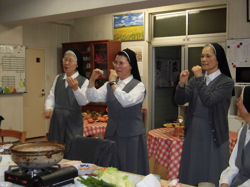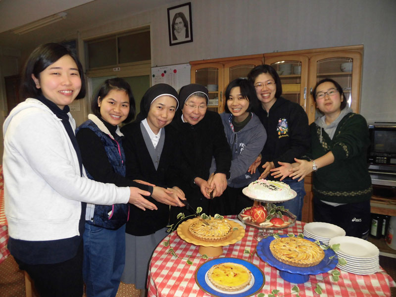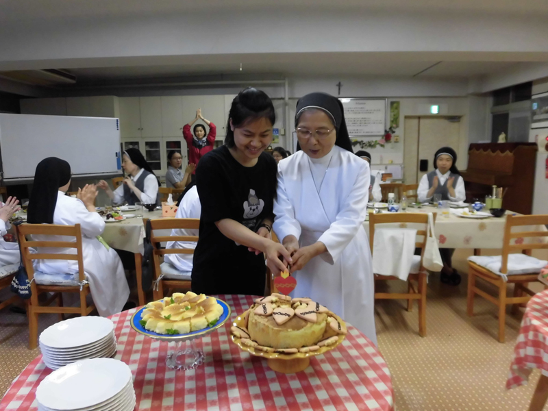 11月のご霊名日のシスターを囲んで 手作りケーキカット!