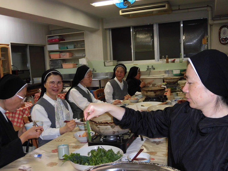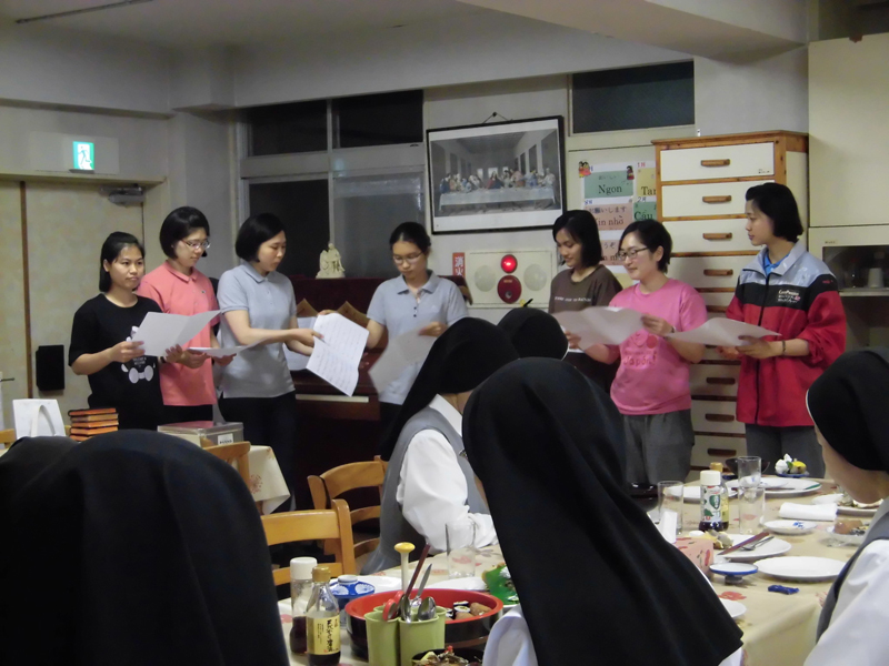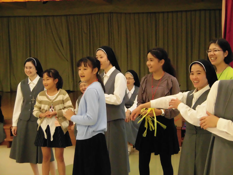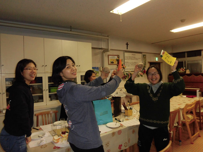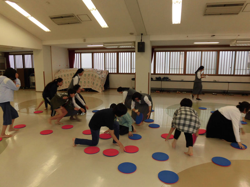 夕食の準備の後は 幼稚園ホールで「喜びを共にゲーム大会」大勢のシスター方の参加・応援を受けて、楽しい時間を過ごせました。