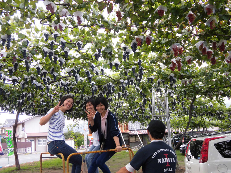 古屋甲玉園では リフトを使っての初めてのぶどう狩りの体験に大はしゃぎ、89歳の古屋のおじいちゃまに、もぎたてのぶどうをたくさん御馳走になりました。