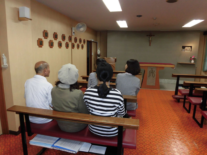 お茶の後は、志願院の小さな聖堂で、職員と共に聖体訪問をする機会を持つ事ができました。日頃直接かかわることの少ない皆様との心の距離が近づき、感謝の気持ちを伝えることができ、有意義なひと時でした。
