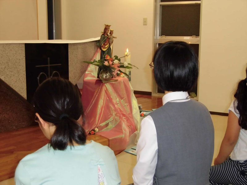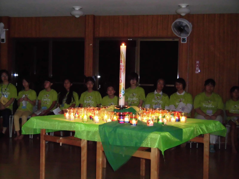 夕食後は、グループでの分かち合い、ロザリオの祈り、マリア様への祈り、寝る前の祈りと 静かな祈りのひと時を持つことができました。