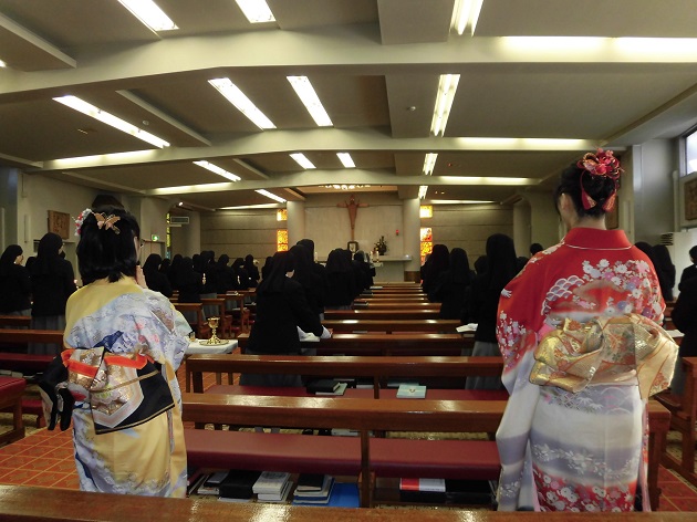 新年のごミサで近隣シスター方とお祈りすることができ、志願者2人ともうれしそうでした。