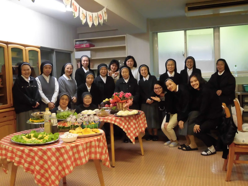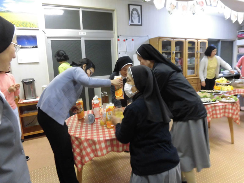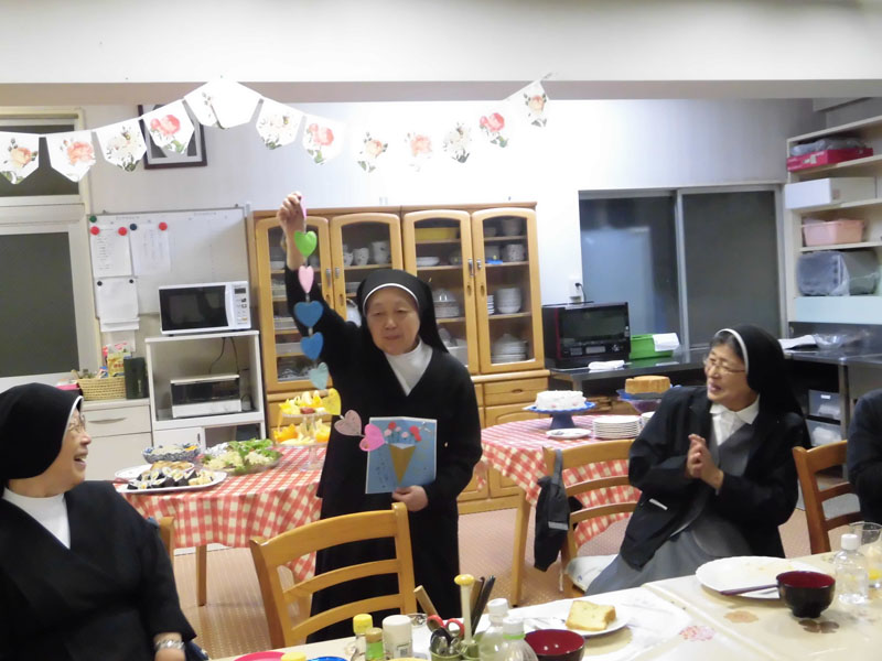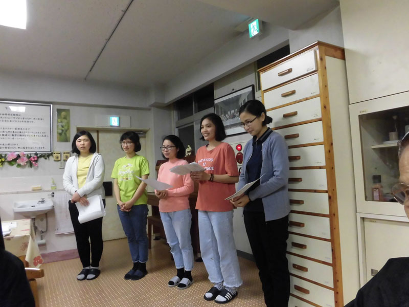 アカデミアでは歌のプレゼント、何日間も秘密で練習してきました。そのかいあって院長様をはじめシスター方を感動させることができ、私たちも喜びいっぱいです。感謝!!