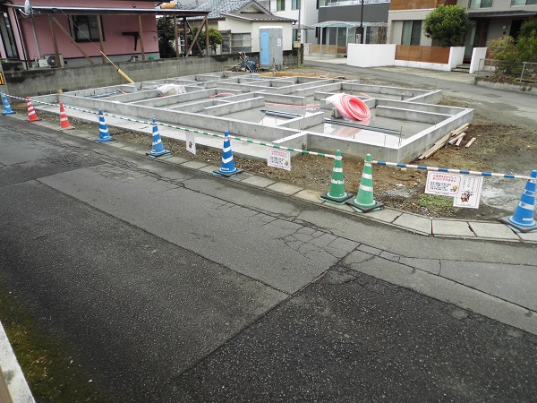 ☆三角土地の小規模ホーム=コンクリートの基礎土台です。